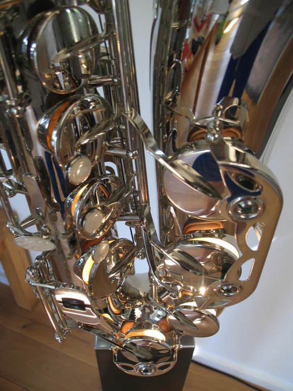 Die Saxophon-Stehleuchte ein Meisterwerk. Der einzigartige Aufbau und die hochwertige Verarbeitung machen diese Lampe zum "Hinkucker" Ihrer Wohnung. Die Stehleuchte ist mit zwei starken LED's ausgestattet und stufenlos dimmbar. Das über die Wand und Decke indirekt abgestrahlte Licht sorgt für eine wohnliche Stimmung. Es kann den Raum mit genügend Helligkeit füllen, aber auch in ein sehr romantisches Licht tauchen - je nach Einstellung. Diese Lampe ist in weiß/gold, schwarz/gold oder in schwarz/silber oder ausgeführt. Der Preis liegt bei 1900€. Lieferung erfolgt gegen Aufpreis im Umkreis von 200 km auch gerne durch uns damit alles gut geht.