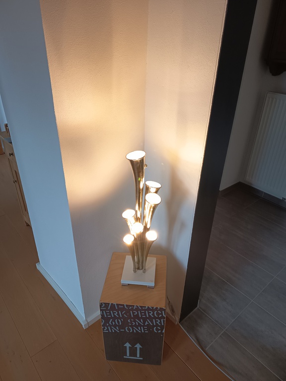 Die 6-fache Schalmei Leuchte ist aufgrund ihrer Höhe auch als Stehleuchte geeignet.